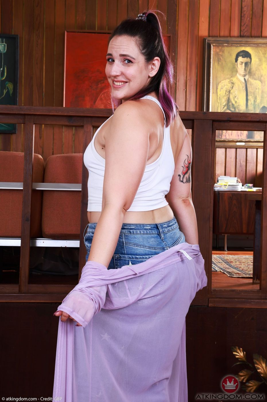 ATK Natural & Hairy: Dria Submits struts it in jeans and purple panties